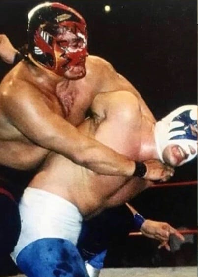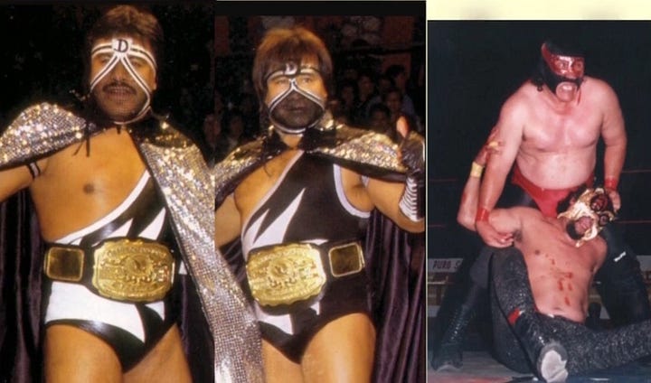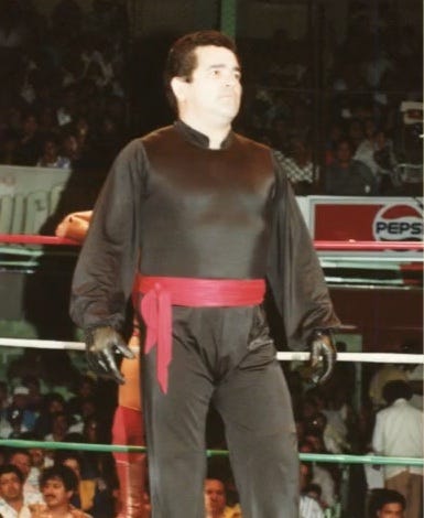 Los Infernales are a huge part of 1980’s EMLL. First on his own, El Satanico has an epic rivalry with Sangre Chicana. MS-1 also has a bloody hair vs. hair match with Chicana in 1983 around the time Los Infernales form. Pirata Morgan replaces Espectro Jr. and the rudos are a tough force for all the tecnicos of the time. Pirata leaves to form his own group and is replaced by Masakre. Satanico cheats to take Pirata’s hair in 1986. As the decade closed out, Satanico leaves the group to focus on his singles career while MS-1 and Masakre feud.