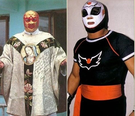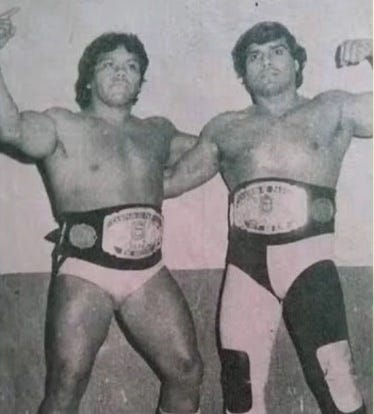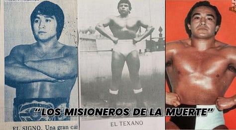 Two famous trios, Los Misioneros de la Muerte and Los Brazos work EMLL in the 80’s. The Misioneros are credited with popularizing trios matches while Los Brazos become a red hot act.