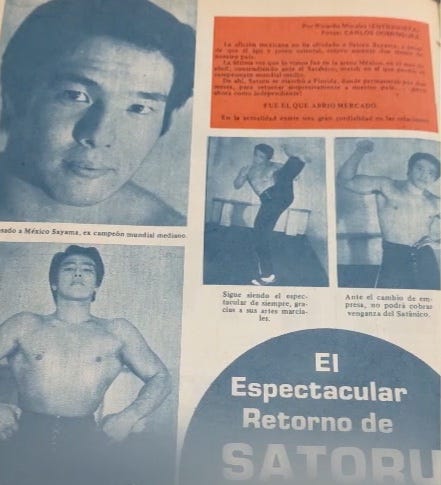 1980: El Satánico scores a huge victory over Satoru Sayama for the World Middleweight Title positioning himself as a top rudo (Mar. 28). El Talismán unmasks El Mágo at Arena Coliseo (Oct. 7). El Fantasma shaves El Satánico’s head at Arena Mexico (Oct. 24).