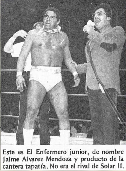 1983: An unprecedented incident occurs when El Crucero no shows his mask vs. mask match with Solar II (Jun. 24). Paco Alonso choses rookie El Enfermero Jr. as the replacement. The crowd is offered refunds but those who stay see a great battle with Solar II winning.