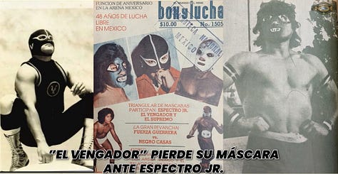 1986: El Faraón defeats La Fiera in a hair match (Feb. 23). Sangre Chicana wins a brutal hair mach with Perro Aguayo in front of a capacity crowd (Feb. 28). Atlantis unmasks Hombre Bala in a sold-out Arena México (Dec. 5). A 36-year ban on women’s wrestling is lifted in Mexico City and Arena Coliseo hosted its first women’s match since 1950 (Dec. 21).